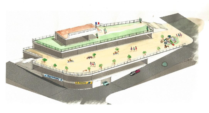 Ce projet vise à créer un pôle regroupant les services essentiels de la commune : la Mairie (400m² environ-niveau 1), une salle de réception, la Poste, un pôle de santé pluridisciplinaire, la police municipale, le CCAS, etc...